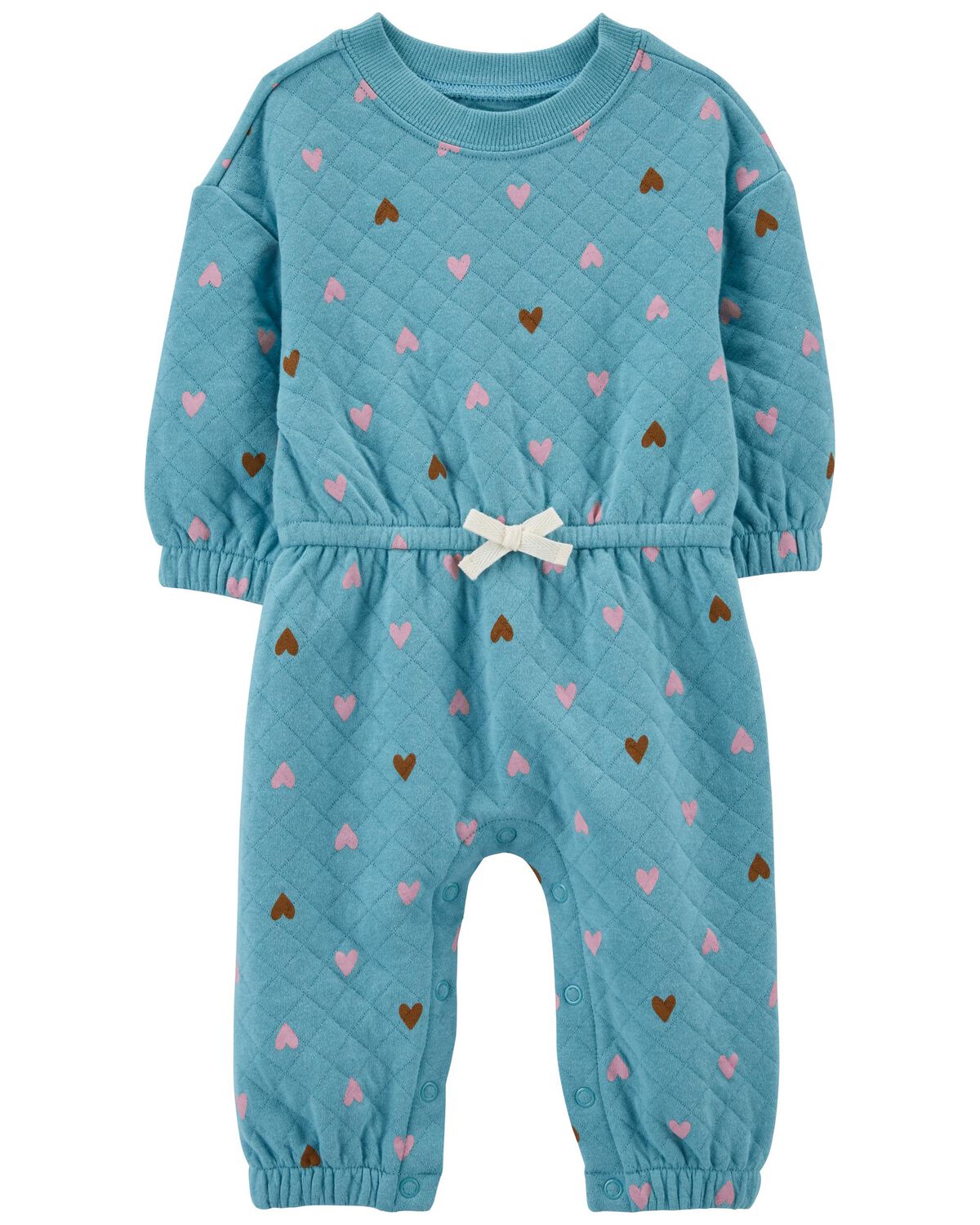 Confeccionado en un acogedor tejido doble de mezcla de algodón, este mono con estampado de corazones es perfecto para el bebé.